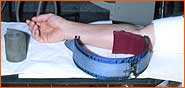 Um im Rahmen handchirurgischer Eingriffe das Risiko der Schädigung gesunder Nachbarstrukturen (Nerven, Blutgefäße, Sehnen) zu mindern, bedarf es der sog. Blutleere. Der ganze Arm wird mit einer Gummibinde oder einer Rolle von körperfern nach körpernah ausgewickelt, das Blut wird dabei aus den Gefäßen in Richtung Schulter gepresst. Nach Aufpumpen der zuvor im Bereich des Oberarmes angelegten Blutleeremanschette kann das Blut nicht mehr in den Arm strömen, die feinen Strukturen in Hand und Arm können nun beim Operieren gut dargestellt und geschont werden. In der Regel verwendet man bei der Blutleeremanschette am Arm einen Druck von max. 300 mmHg, alters- und blutdruckentsprechend auch weniger. Die Dauer der Blutleere sollte sich auf max. 2 Stunden begrenzen. Diese Zeit reicht in aller Regel auch aus, den Teil der Operation, der unter Blutleere - Bedingungen ausgeführt werden sollte zu beenden. |